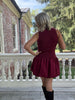 Show off your flirty side with the Hillary Bubble Dress! This crimson red mini dress features a sleeveless bodice, high neckline and bubble skirt hem. Style with your favorite boots for a ready to wear look.