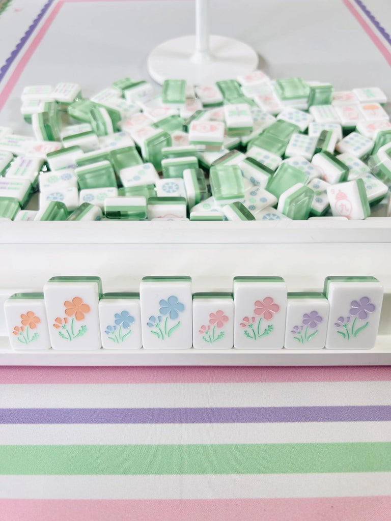 Featuring a dazzling blend of light pink, sea-glass green, light blue, peach and violet. This travel set turns heads and steals the spotlight. The sea-glass green backing adds a luxe touch, while each hand-painted tile is crafted from durable, premium materials for a flawless play experience.