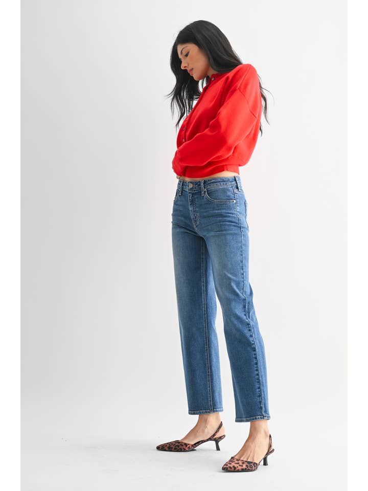 Eleni Mid Rise Slim Wide Leg Denim - Medium Denim