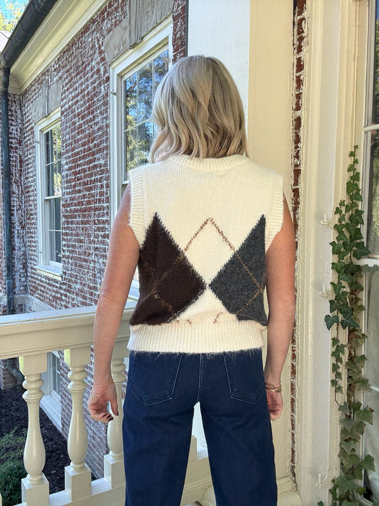 We are loving the sophisticated look of the Addie Argyle Sweater Vest. With its classic argyle print in neutral tones, sleeveless bodice and slight v neckline, this piece is a must add to your Autumn closet.