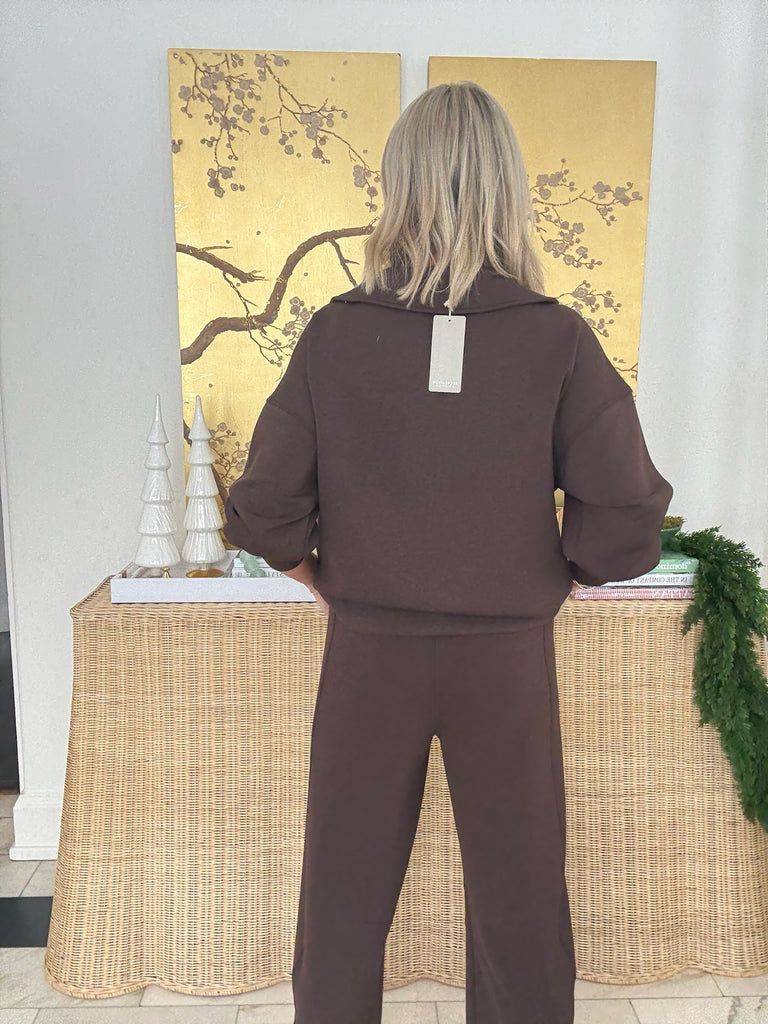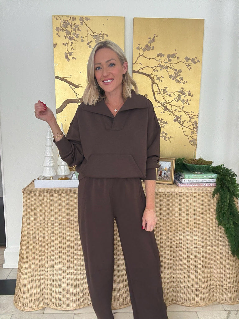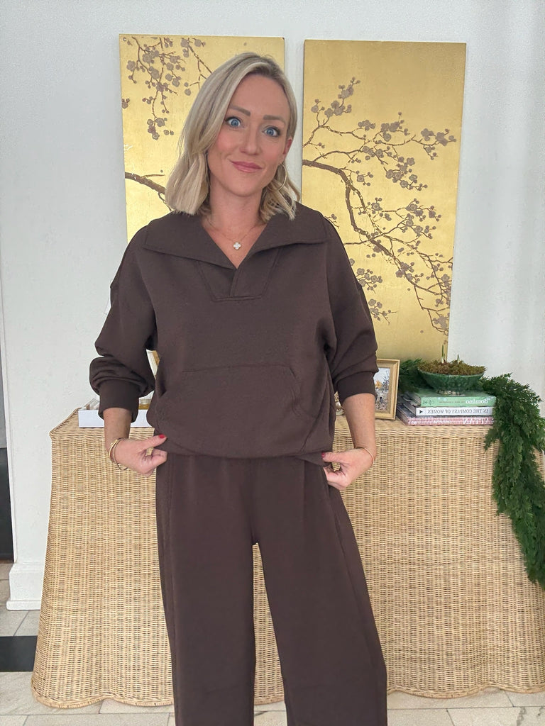 Bundle up with coffee and a good book in the Alana Top! This lightweight top features long sleeves, collared v neckline and front pocket.