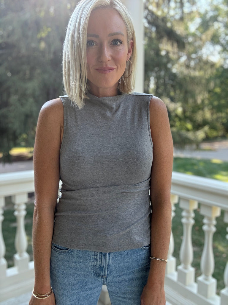 Add a new basic to your look with the Artum Ribbed Knit Top! This solid gray tank featured a ribbed fitted material and high neckline.