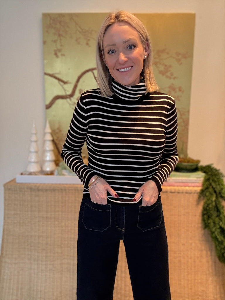The perfect basic piece has just arrived at Dress & Dwell! With its classic black and cream stripe material, fitted sleeves and turtleneck neckline, the Madison Turtleneck is so versatile you'll be wearing it over and over again.