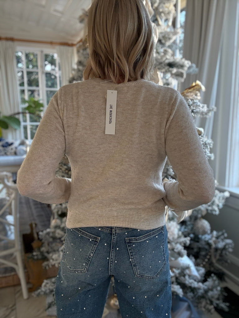 There is something so simple and chic about the Daniels Cardigan. This oatmeal colored ribbed material shapes a button front cardigan with long sleeves and standard hemline.