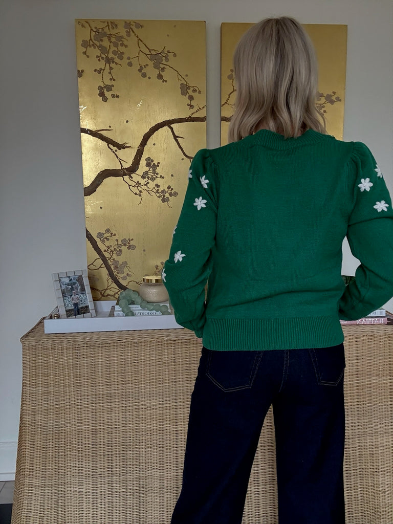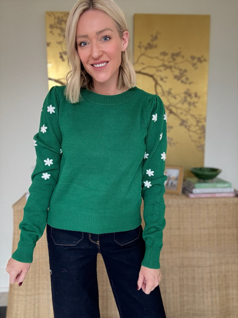 The bold green color is just one of our favorite things about the Delilah Sweater! With its vibrant green colon, long sleeves with floral embroidery and standard hem this piece is an instant add to cart.