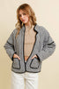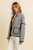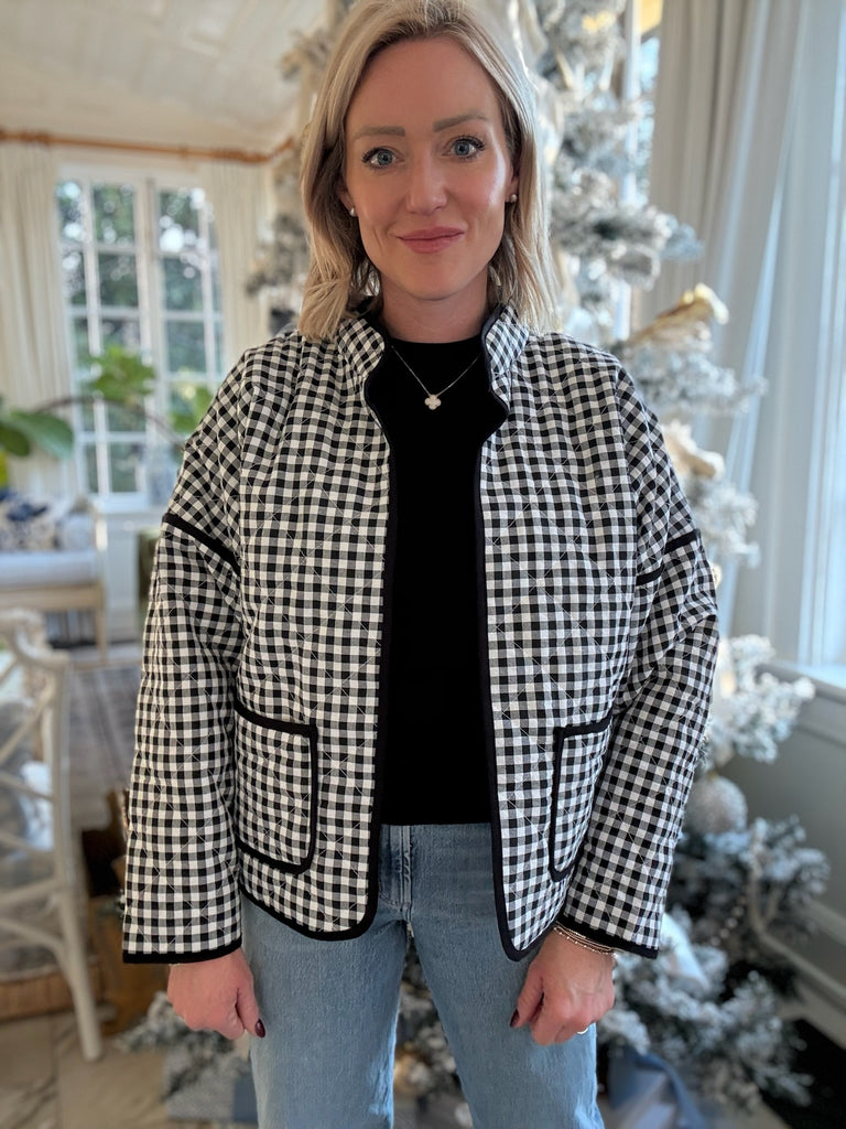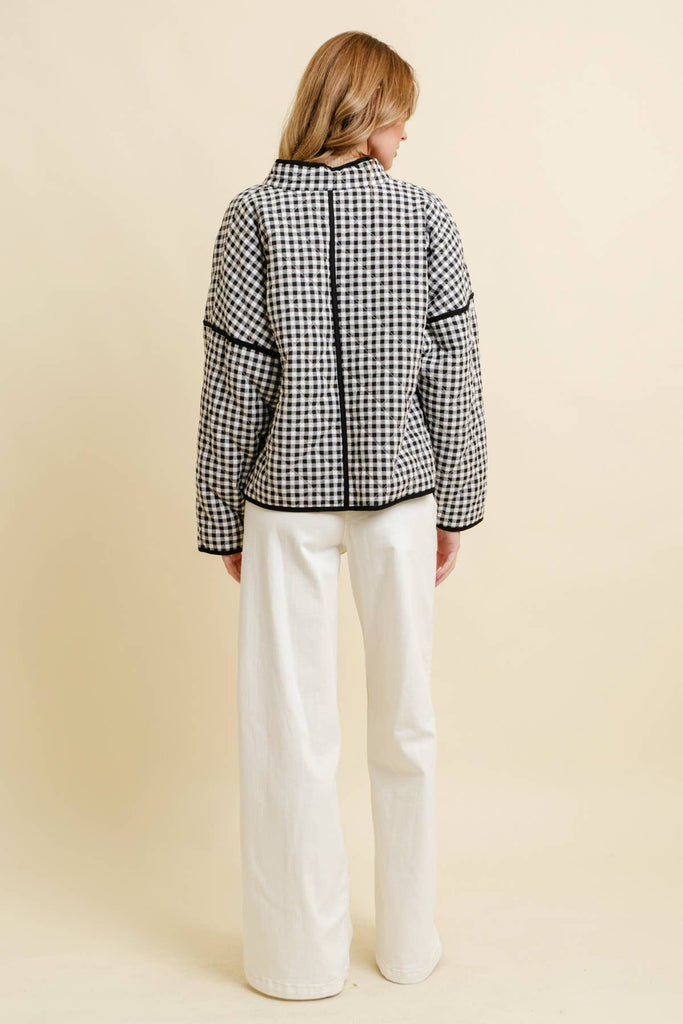 We loving the plus and comfy fit of the Ford Quilted Jacket. With its quilted gingham material in black and white, long sleeves, open front and exterior pockets this piece is the perfect addition to you cold weather look.