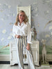 You'll be ready for any summertime event with the Georgia Stripe Pants! These blue and cream cotton pants feature wide legged hem and front button closer. Dress up or down to match any occasion.