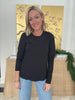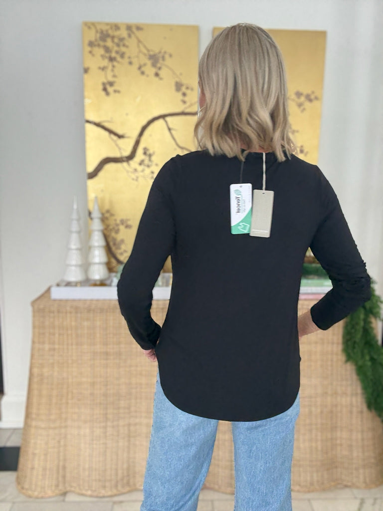 If you are needing a classic long sleeve tee the Iggy Solid Top is your girl. This standard long sleeve tee in a classic black color is the perfecting layering piece.