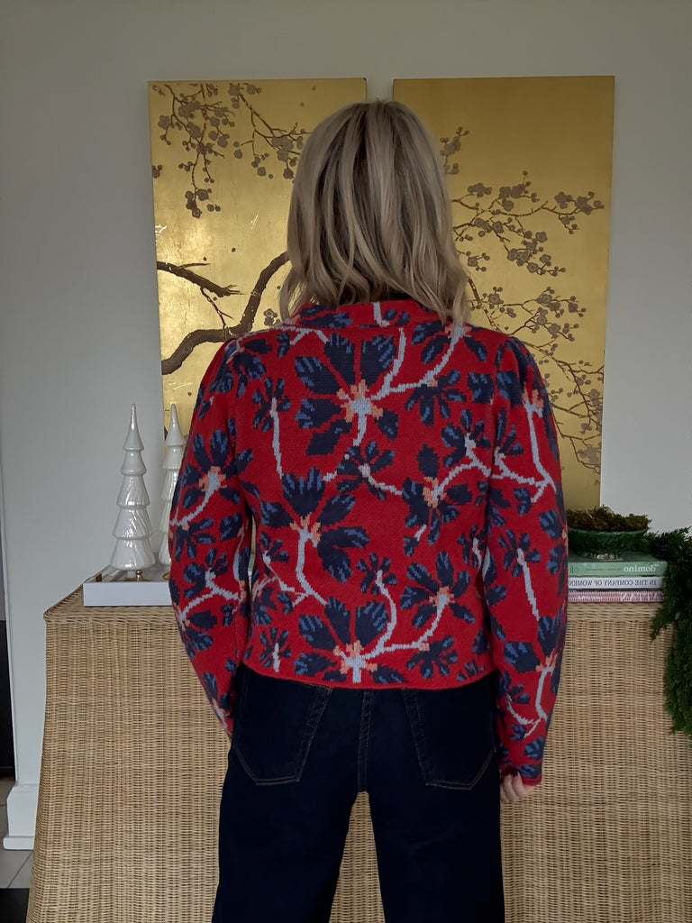 Catch everyone's attention in the Justin Floral Sweater! With its bold cherry red and blue floral print, long sleeves and classic neckline this sweater is unlike anything you have in your closet.