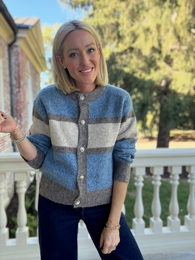 The Kelly Stripe Cardigan is an absolute must have for the cool Fall mornings! Featuring a cool toned striped print, long sleeves and front button closures this piece is an instant add to cart.