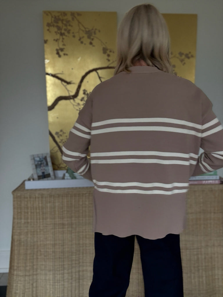 Classic stripes are always a staple in any closet! With its plush cream and tan stripes long sleeves and standard hemline the Lucille Sweater is a must have.