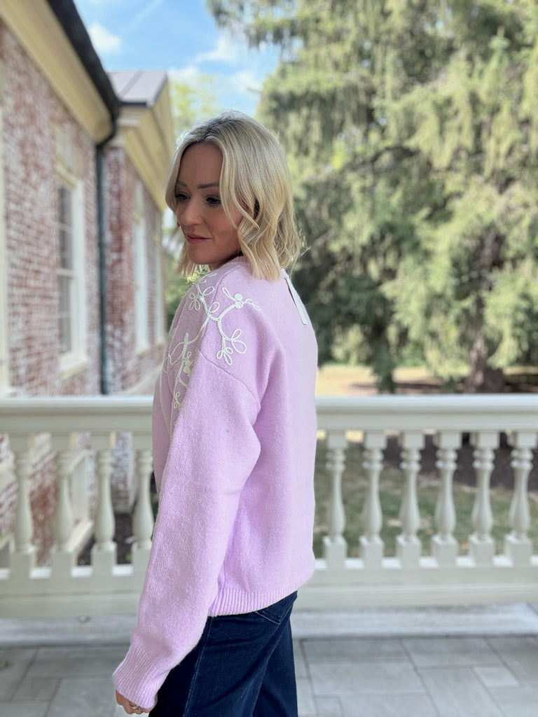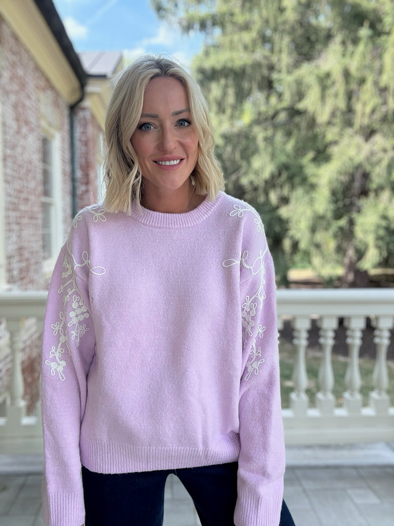 We are loving the pastel knit of the Michela Floral Sweater! With its soft Lavendar color, long sleeves and floral embroidery throughout, this piece is a must have for the girls who love color year round!