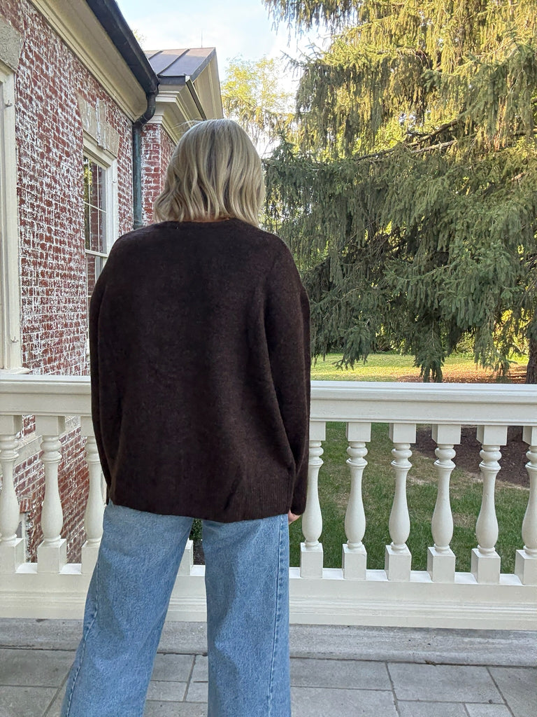 A brown sweater is always a must have for Autumn. With its soft dark brown knit material, long sleeves and slightly cropped hemline this piece is sure to be an instant classic.