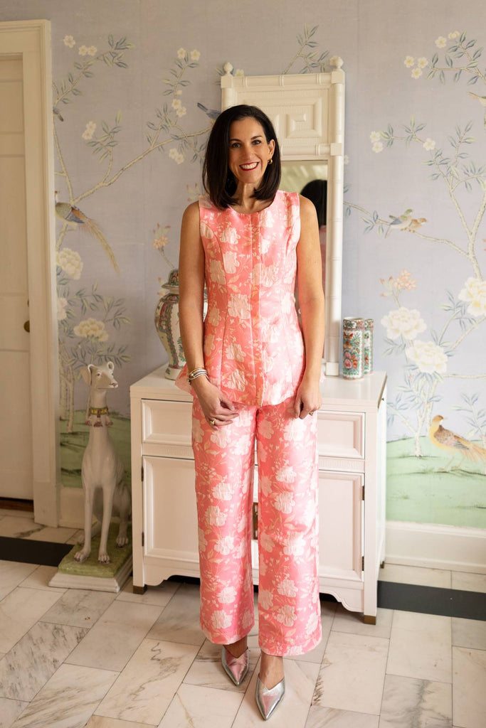Put your best foot forward this Spring with the Nicole Wide Leg Pants. With a pink and white floral print, wide pant legs and button closure this these pants are a must have. Style with your favorite top of the match Nicole Sleeveless Top for a matching look.