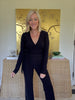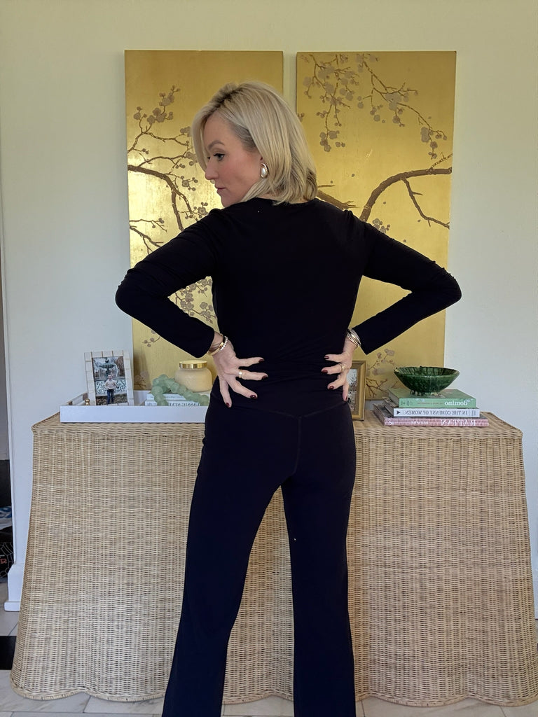 The Polina Top is so soft you're never going to want to take it off! With its solf lightweight navy blue material long sleeves and tie wrap waist this is a post pilates must have. Style with your favorite bottoms or with the matching pants.
