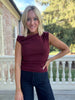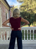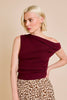 You'll be looking very sultry in the Posey Asymmetrical Top! This knit top features a deep burgundy color, asymmetrical neckline and slightly cropped hem. Style with your favorite bottoms for multiple ways to wear!