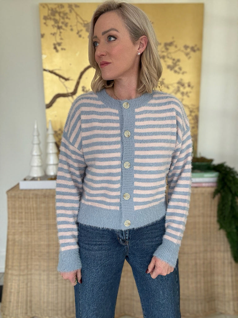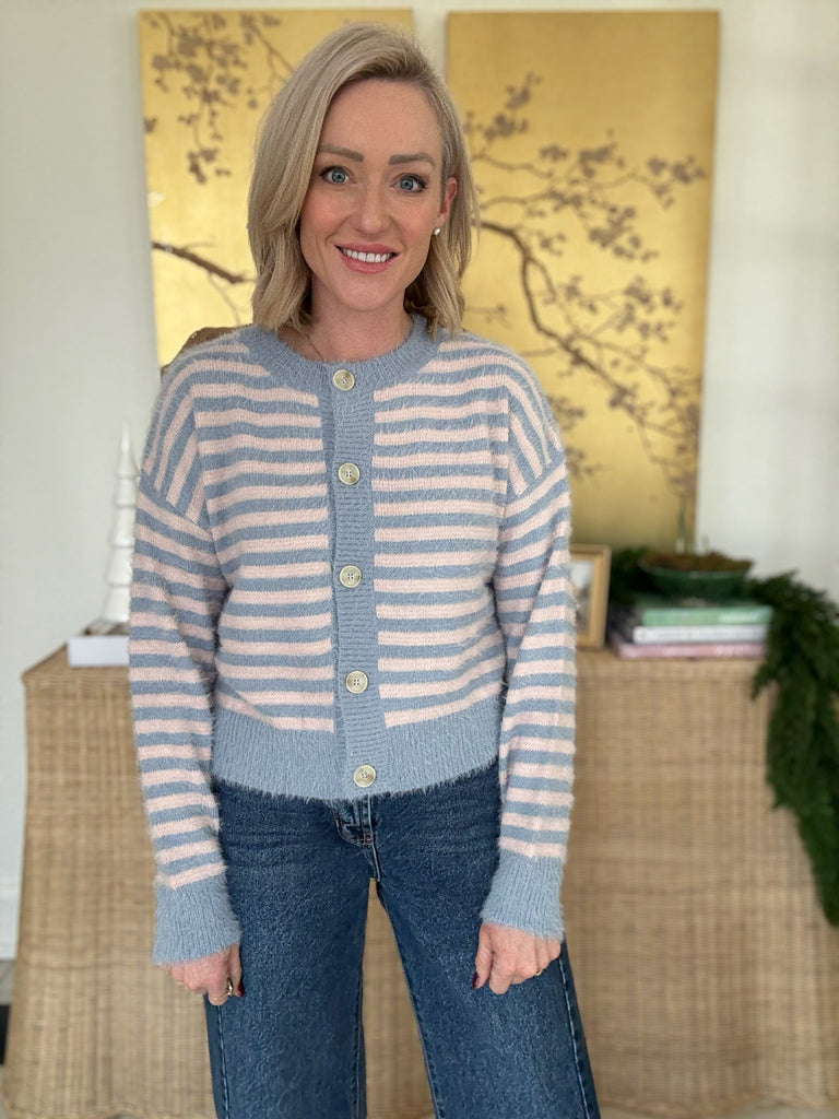 The Wonderland Cardigan is making our candy land dreams come true! With its plush pastel stripe material, long sleeves and button front closures this piece is an instant add to cart.