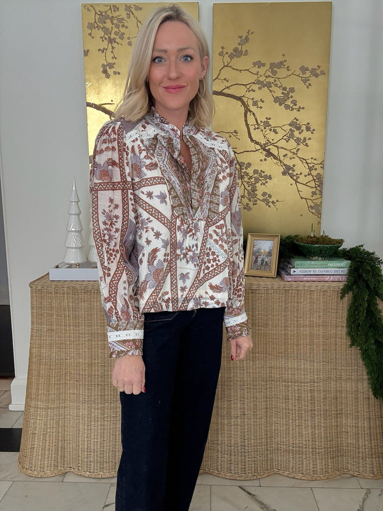 Stand out from the crowd in the Franci Mix Print Top! Featuring a multicolored print, long sleeves, and high neckline this piece will bring you all the compliments!