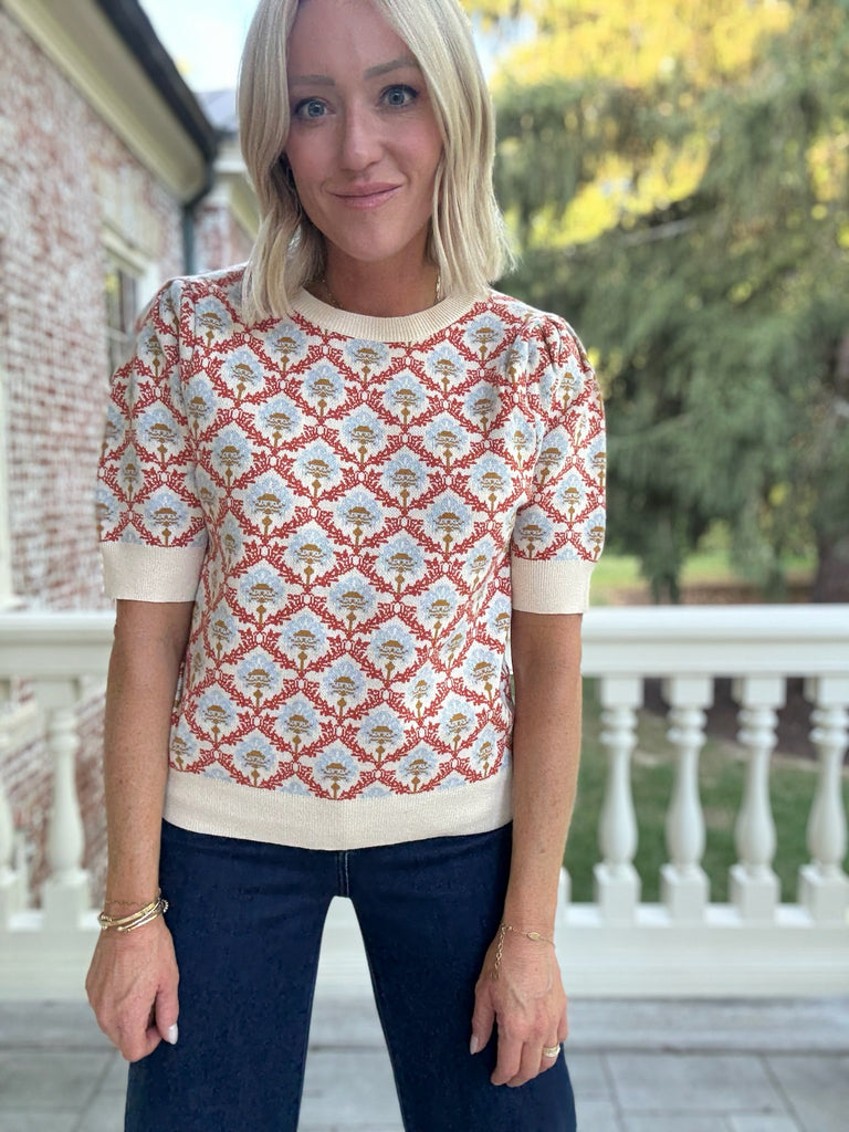 The Jilliam Multi Print Sweater Top is perfect for those warm Fall days! With its unique floral print in Fall tones, short sleeves and ribbed cuffs and hemline, this piece will have you wearing it time and time again.