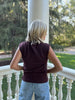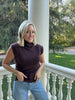 The Qunicey High Neck Top is anything but basic. With its deep chestnut color, sleeveless bodice and high neckline this piece is a must snag.