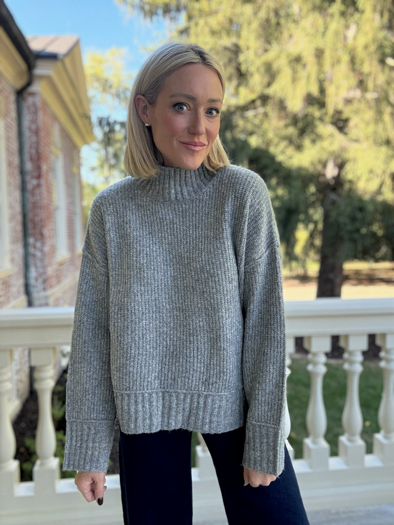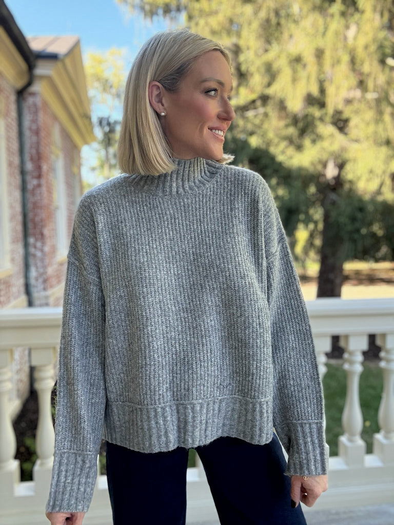 Cornelia Mock Neck Sweater - Light Grey