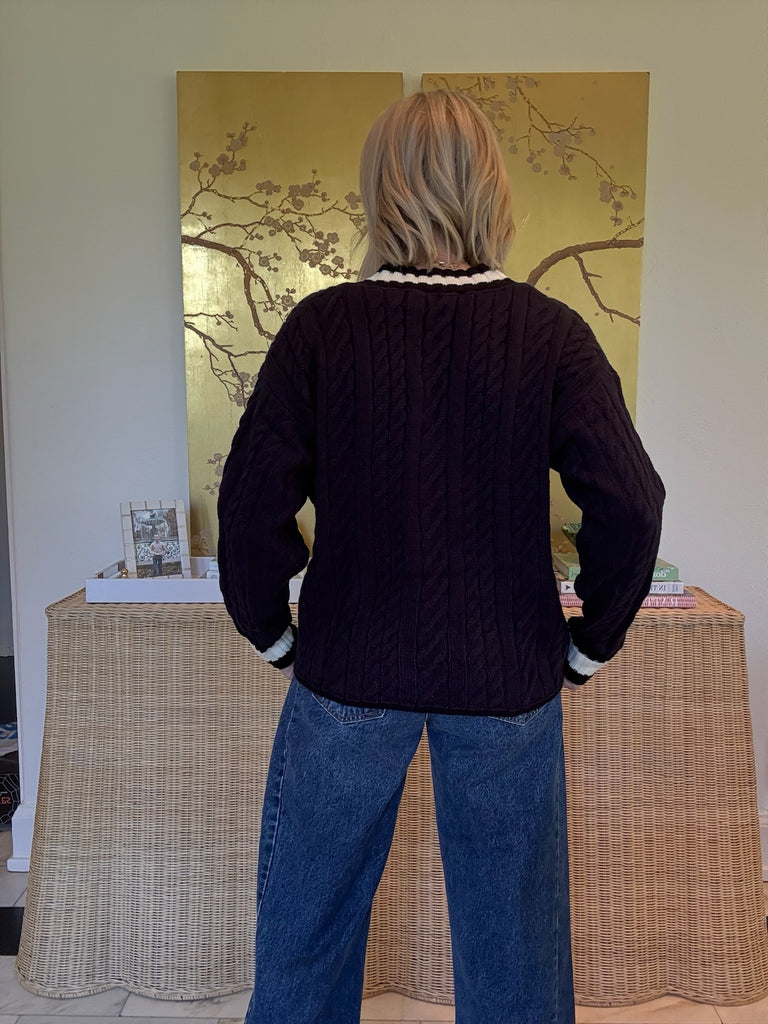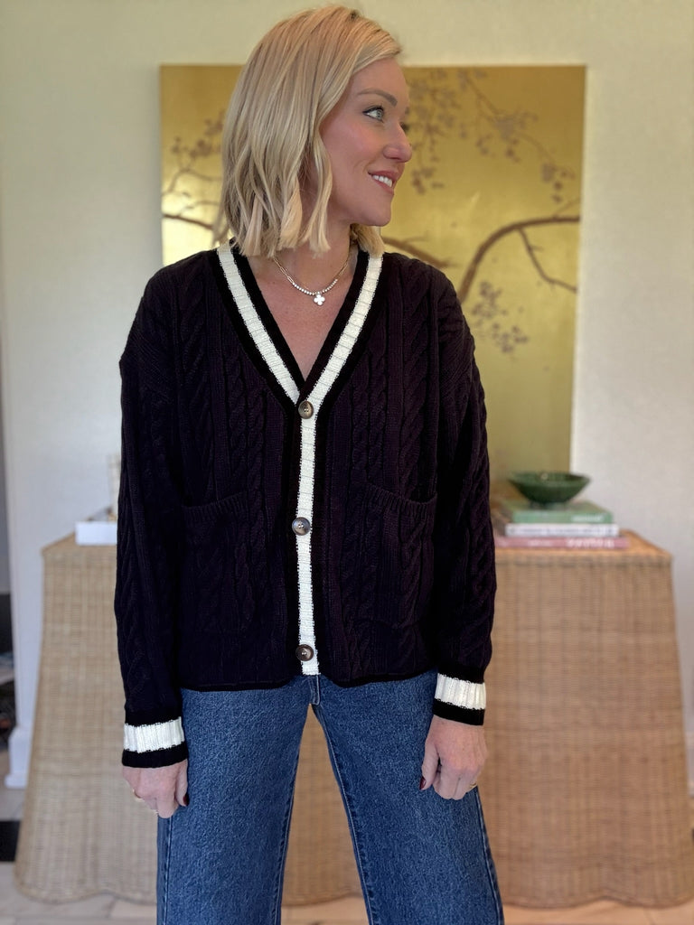 You'll be giving off the collegiate vibes with the Murl Cardigan! This oversized cardigan in navy blue and cream features a v neckline with button closures and long sleeves. Style with your favorite jeans or as a layered look for many ways to wear.