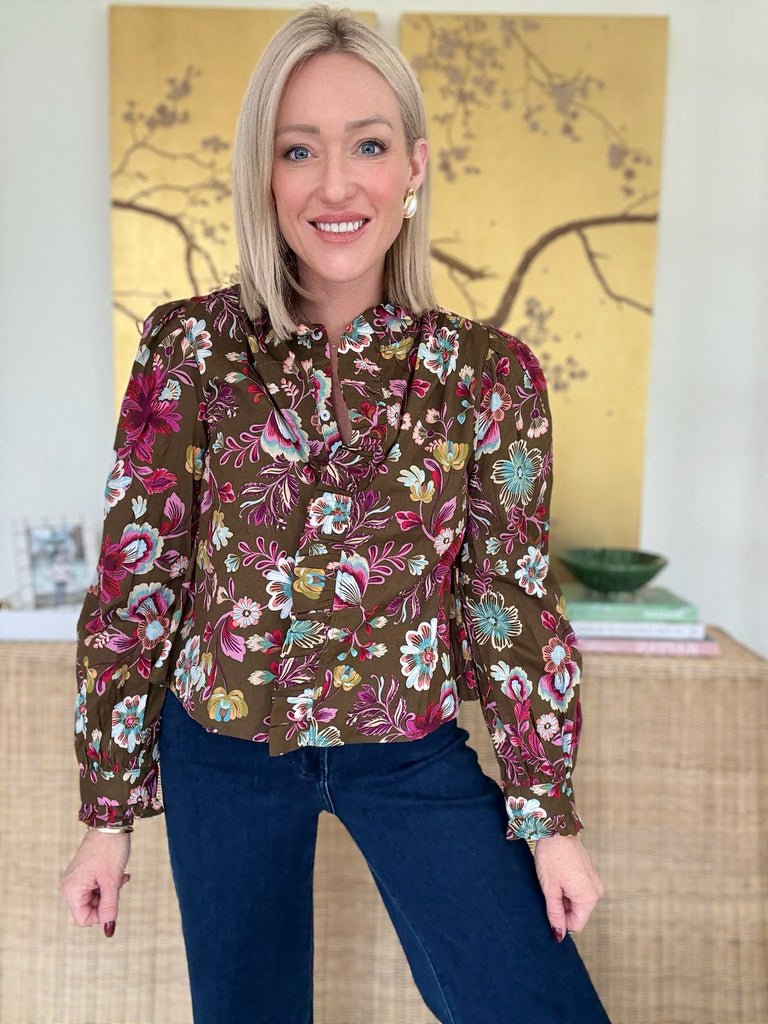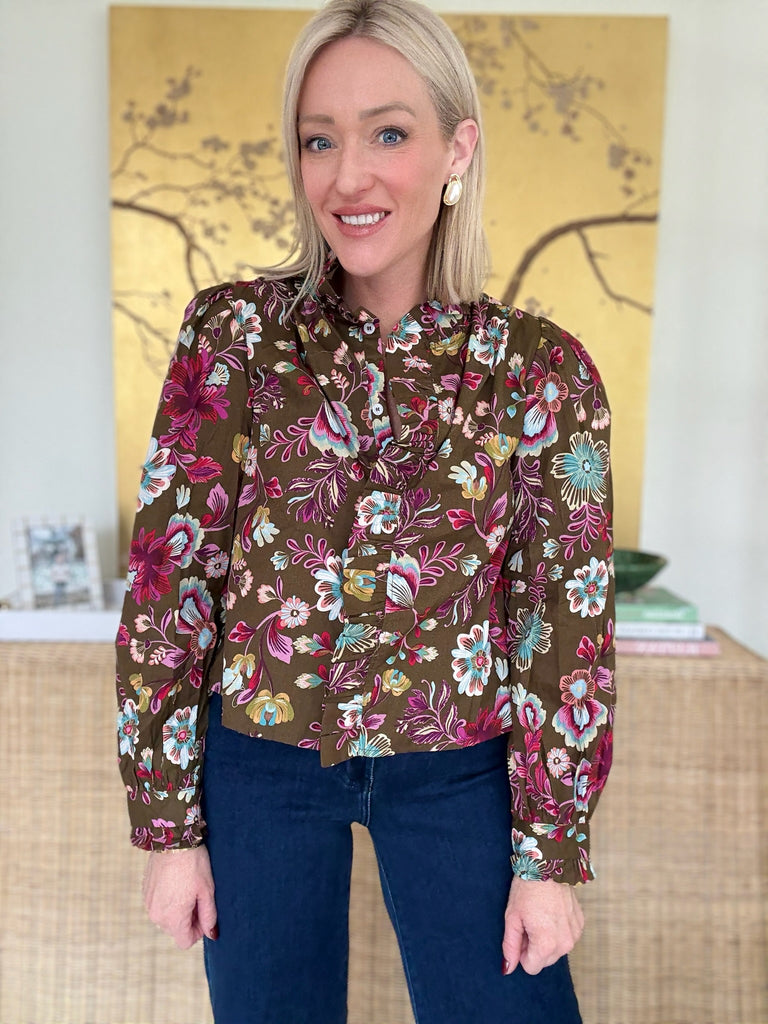 There are so many things to love about the Nicole Floral Top, but our favorite might just be its vibrant colors! With its multicolored floral print, long cuffed sleeves and ruffled neckline this piece is a must have for the girls that want something unique!