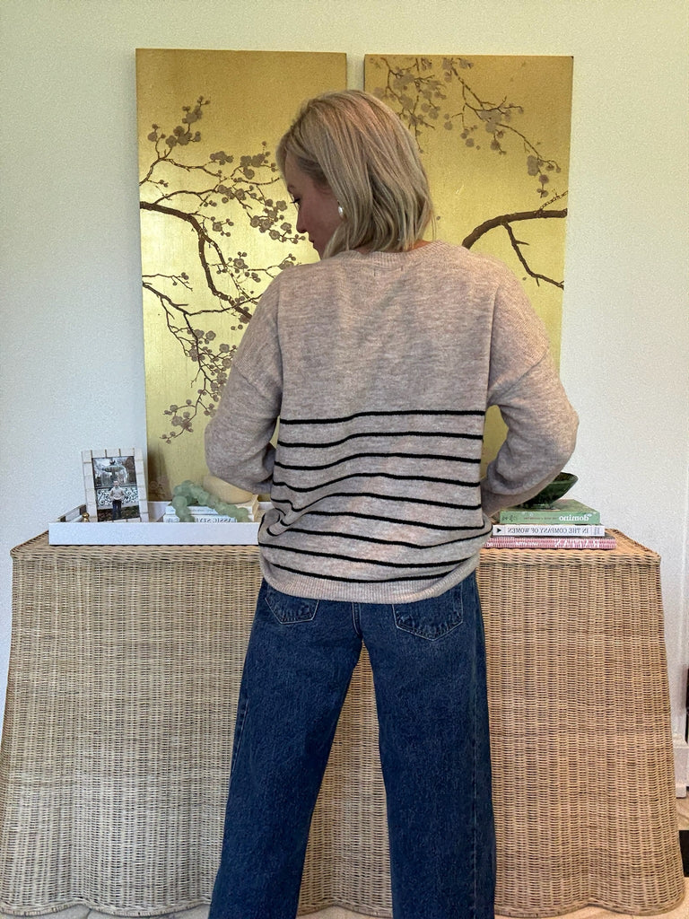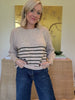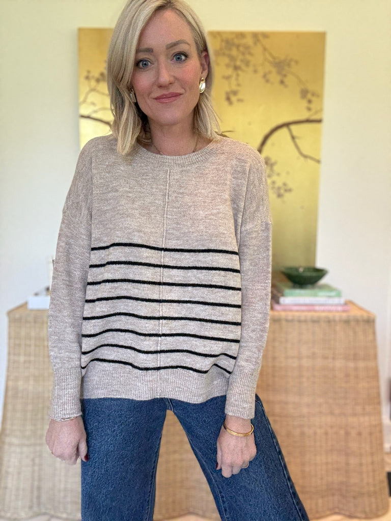 We are loving the comfort and style of the Ralph Stripe Sweater! With its neutral stripe print long sleeves and standard hem this piece is a must have!