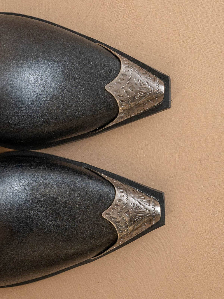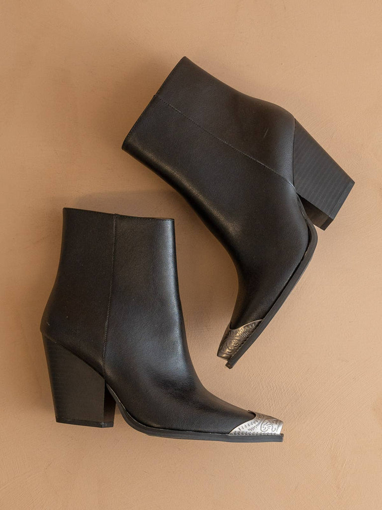 The Zion Black | Elegant Western Bootie Etched Metal Toe