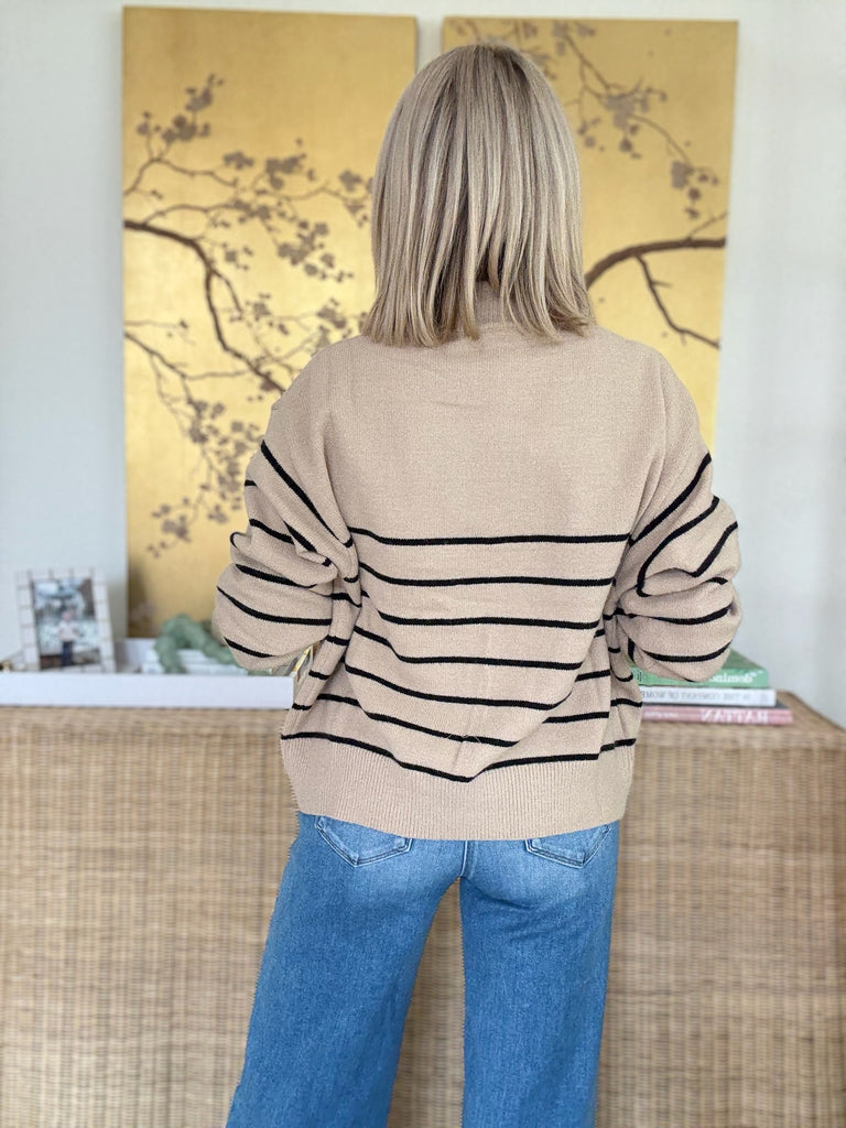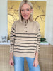 Keep cozy this November with the Yvette Button Sweater! With its plush tan and black stripe knit and button accents on the neckline and cuffs this piece is sure to be an instant classic.